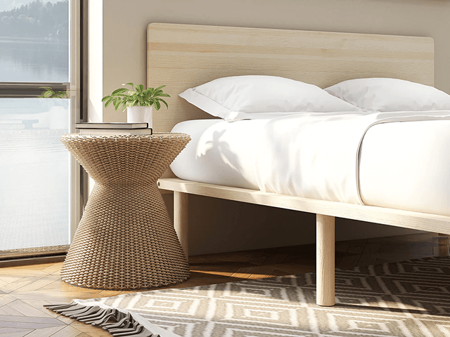 Understated, modern and effortlessly graceful, this bed frame features a gorgeous Scandinavian design.