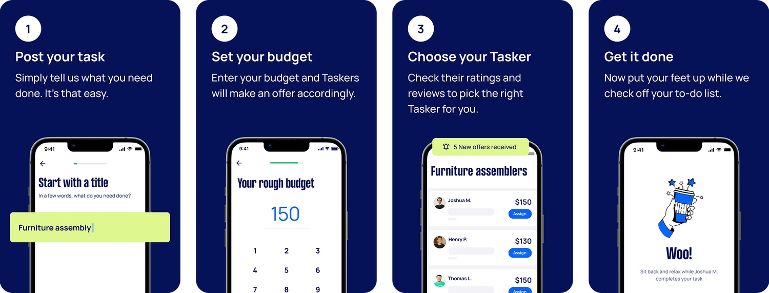 Make sure you check out the Tasker’s profile before accepting an offer, read their reviews and take a look at their skills and badges. Check out our guide for choosing the right Tasker