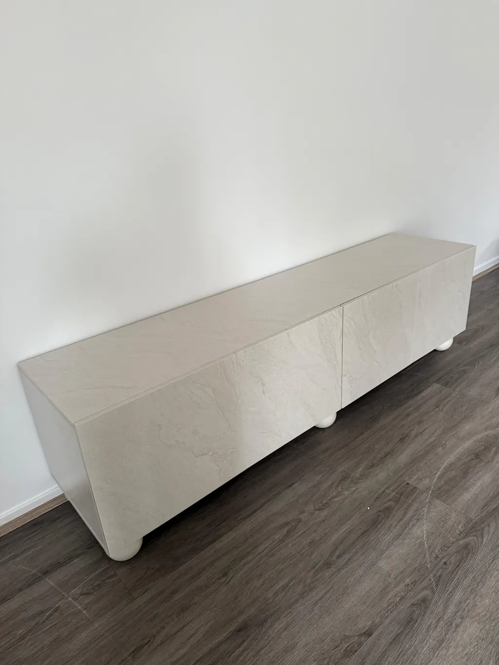 The round legs of the Ally TV unit add a unique twist to the sleek lines of the body, creating an eye-catching detail that fits with the modern look of this trendy piece.