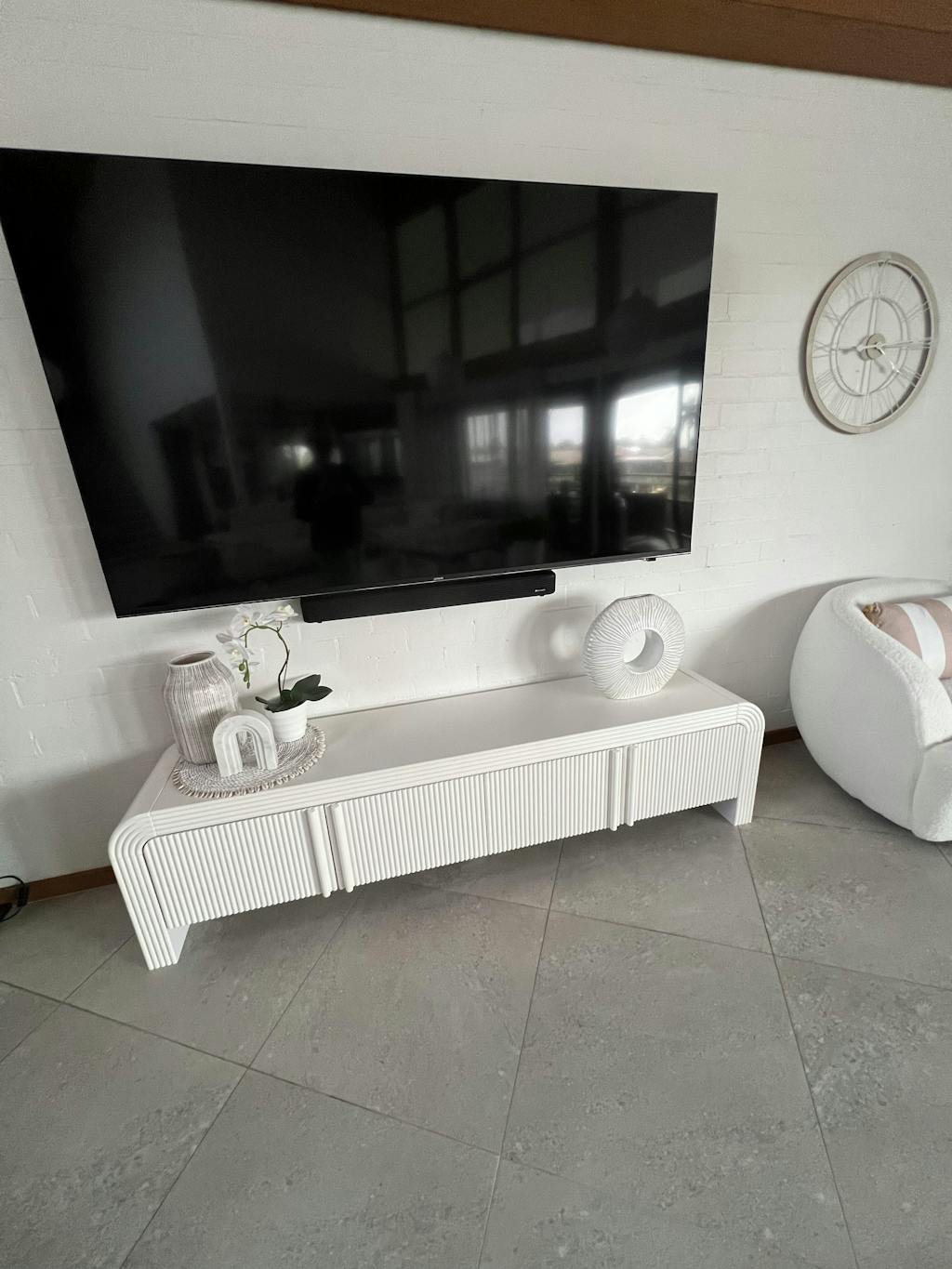 The fluted details of the Arlo Tv Unit add some textural interest without creating unnecessary bulk and clutter in your interior.