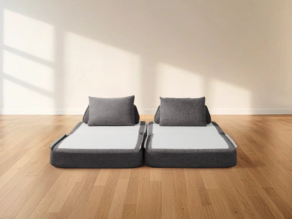 Cushie Modular Sofa Bed transforms from a stylish seat to a cozy bed in seconds—just flip and snooze. Unlike traditional sleeper sofas with noisy metal frames and complex pull-outs, Cushie keeps it simple and silent.