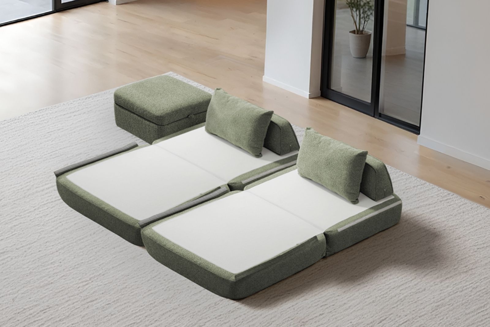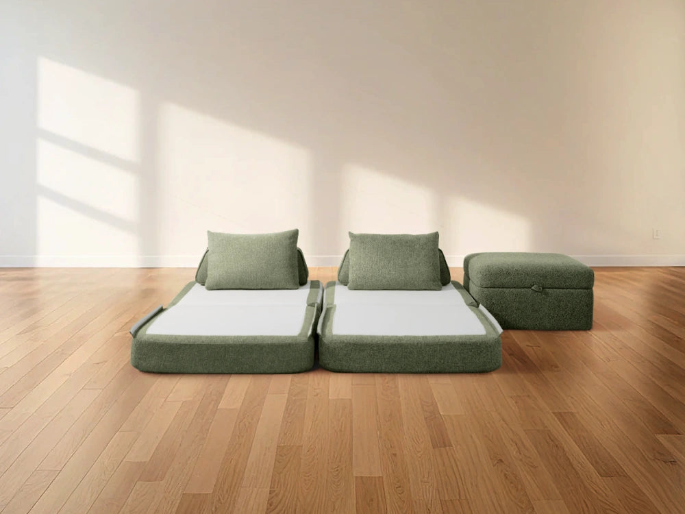 Cushie Modular Sofa Bed transforms from a stylish seat to a cozy bed in seconds—just flip and snooze. Unlike traditional sleeper sofas with noisy metal frames and complex pull-outs, Cushie keeps it simple and silent.
