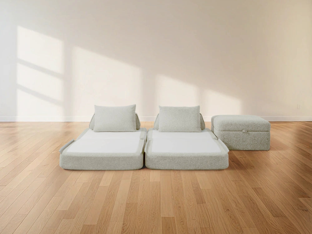 Cushie Modular Sofa Bed transforms from a stylish seat to a cozy bed in seconds—just flip and snooze. Unlike traditional sleeper sofas with noisy metal frames and complex pull-outs, Cushie keeps it simple and silent.