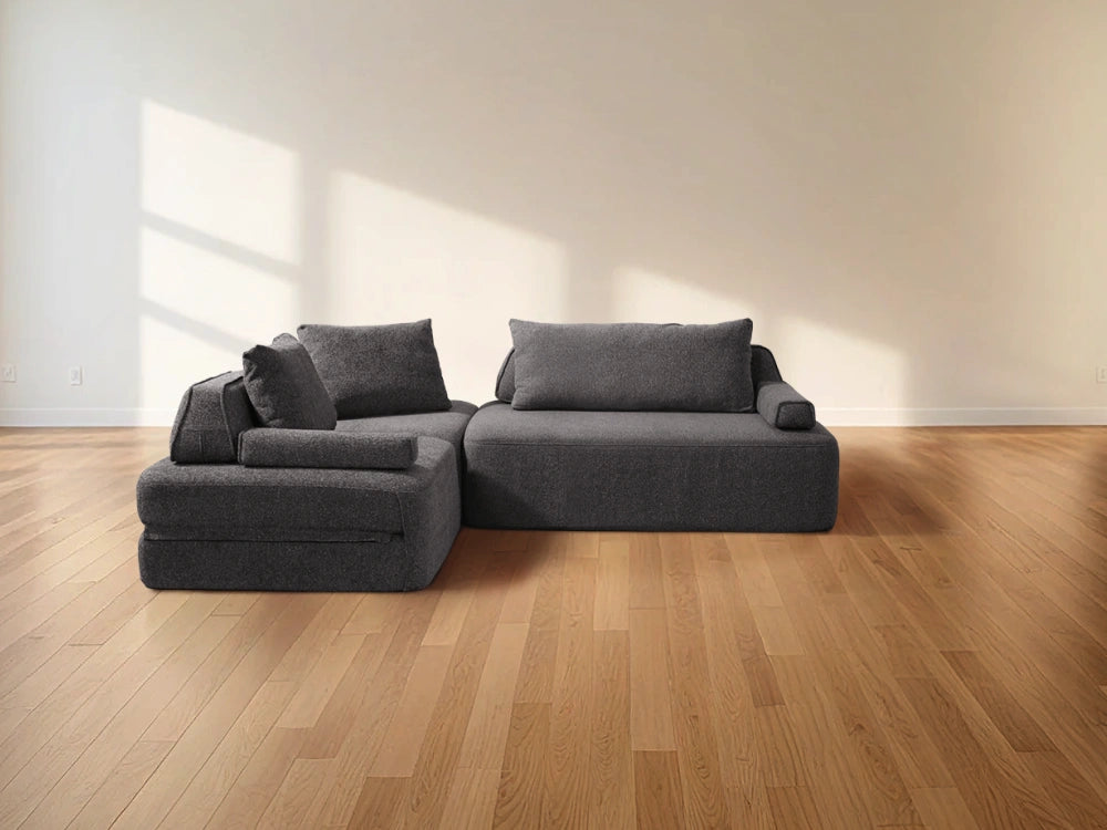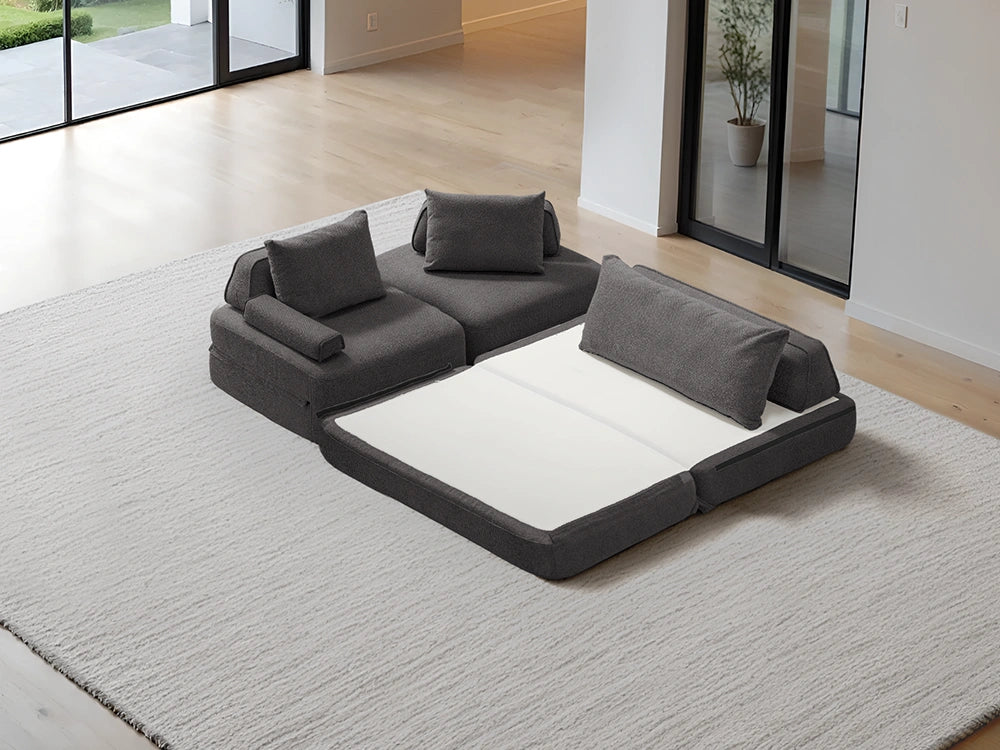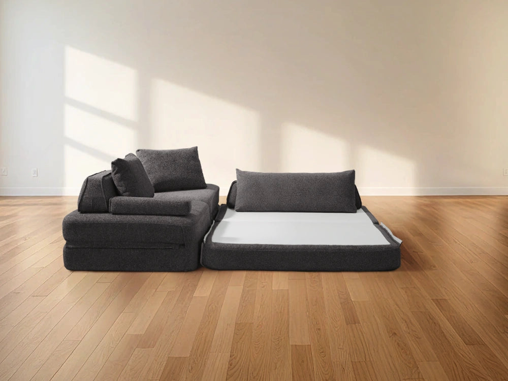 Cushie Modular Sofa Bed transforms from a stylish seat to a cozy bed in seconds—just flip and snooze. Unlike traditional sleeper sofas with noisy metal frames and complex pull-outs, Cushie keeps it simple and silent.