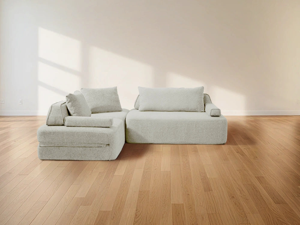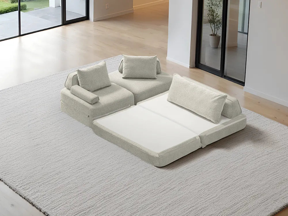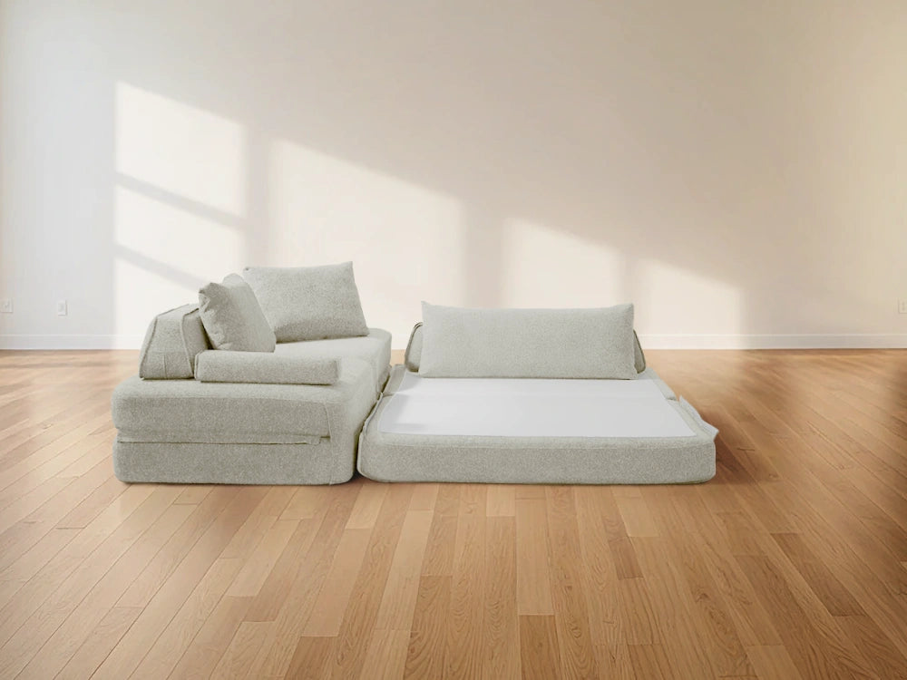 Cushie Modular Sofa Bed transforms from a stylish seat to a cozy bed in seconds—just flip and snooze. Unlike traditional sleeper sofas with noisy metal frames and complex pull-outs, Cushie keeps it simple and silent.