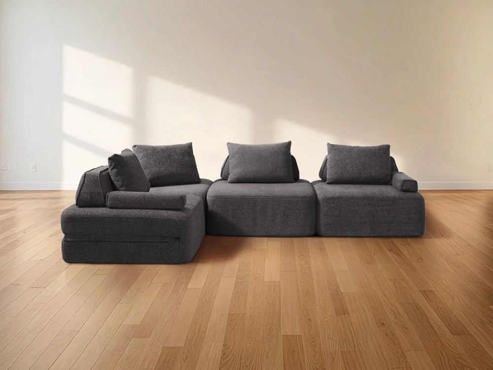 Cushie Modular Sofa Bed transforms from a stylish seat to a cozy bed in seconds—just flip and snooze. Unlike traditional sleeper sofas with noisy metal frames and complex pull-outs, Cushie keeps it simple and silent.