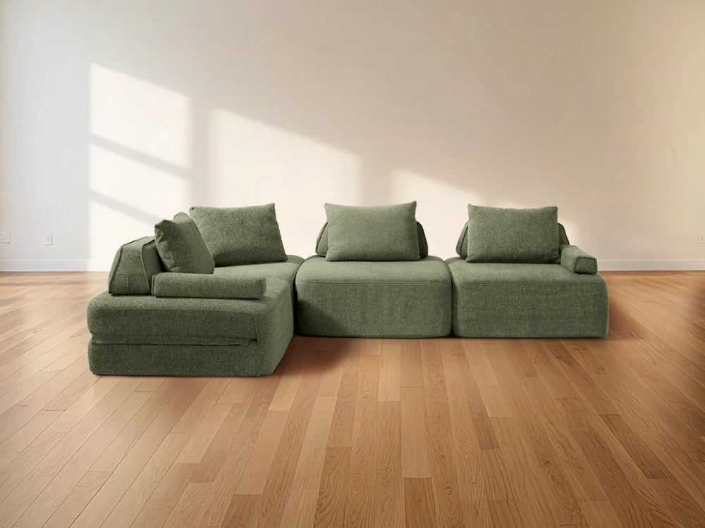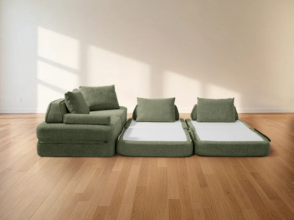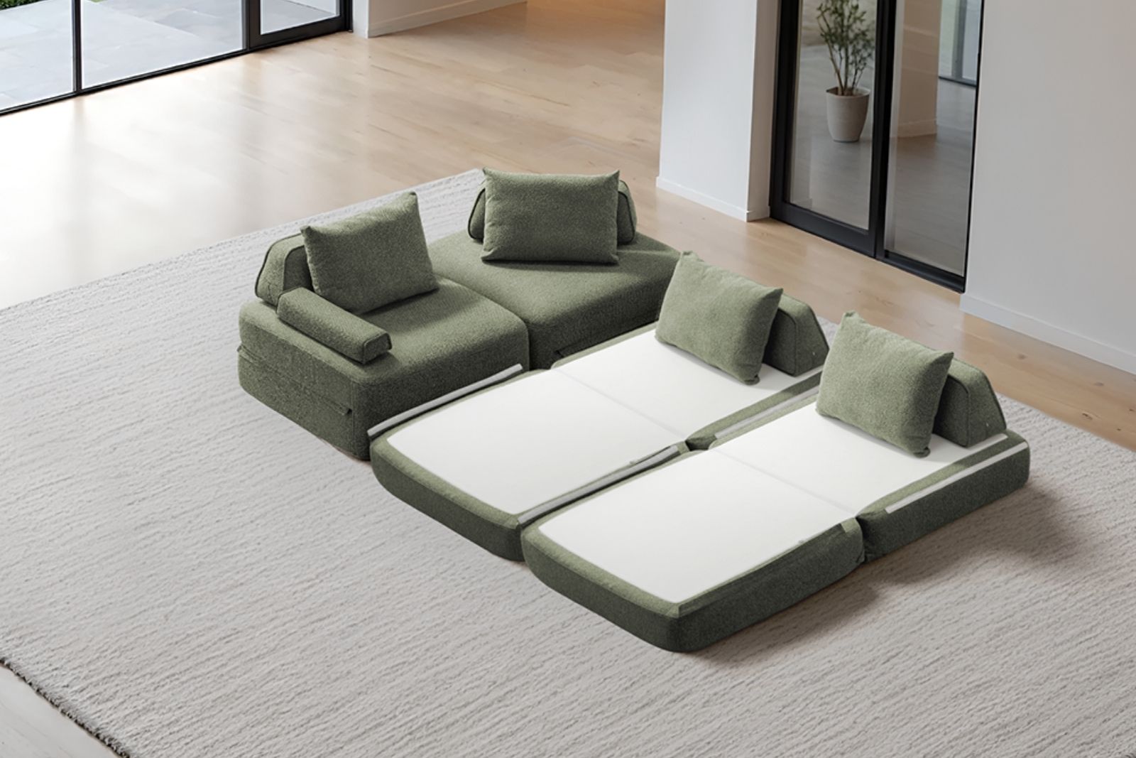 Cushie Modular Sofa Bed transforms from a stylish seat to a cozy bed in seconds—just flip and snooze. Unlike traditional sleeper sofas with noisy metal frames and complex pull-outs, Cushie keeps it simple and silent.