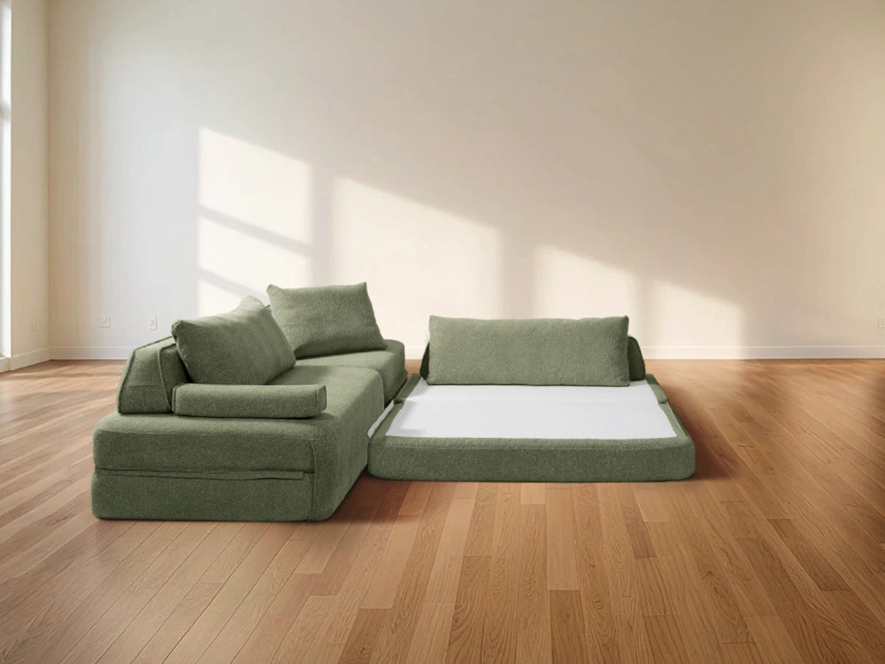 Cushie Modular Sofa Bed transforms from a stylish seat to a cozy bed in seconds—just flip and snooze. Unlike traditional sleeper sofas with noisy metal frames and complex pull-outs, Cushie keeps it simple and silent.