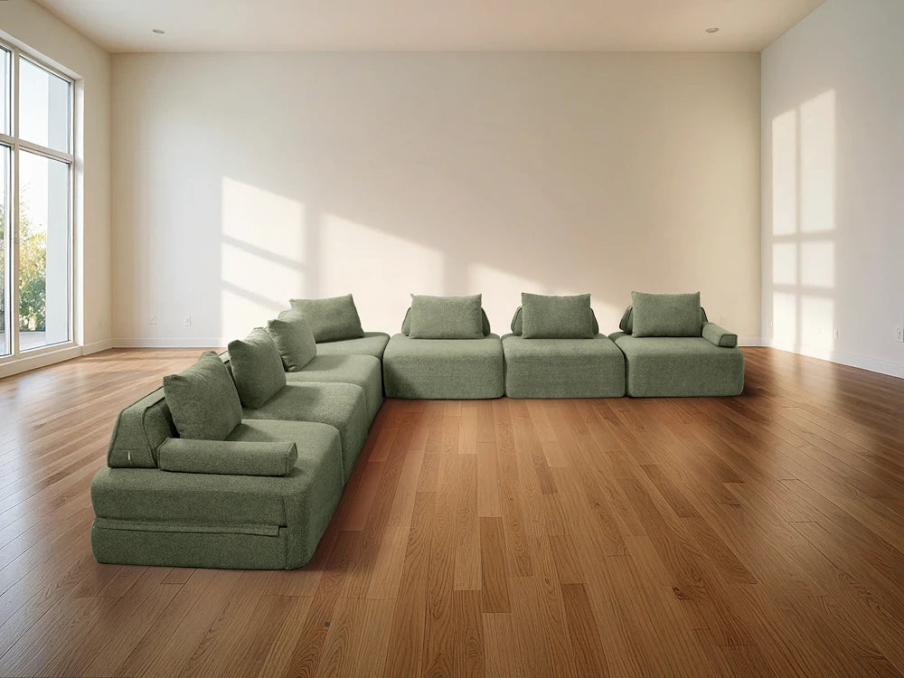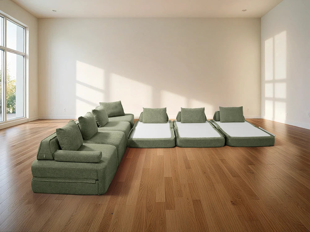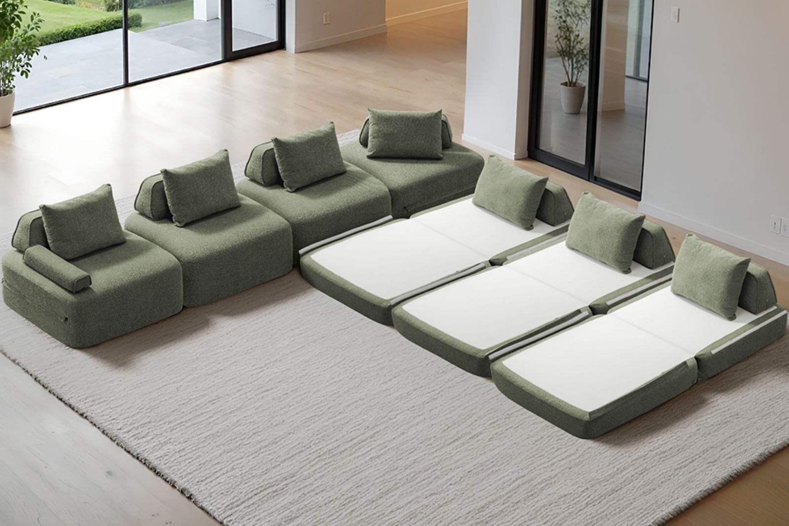 Cushie Modular Sofa Bed transforms from a stylish seat to a cozy bed in seconds—just flip and snooze. Unlike traditional sleeper sofas with noisy metal frames and complex pull-outs, Cushie keeps it simple and silent.