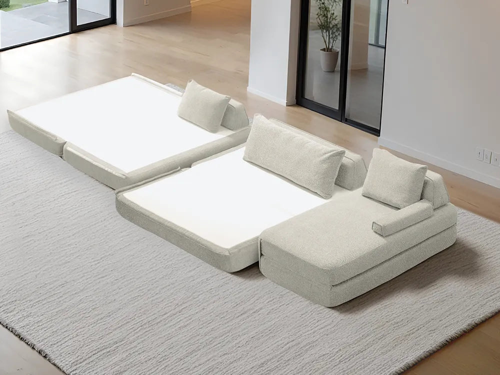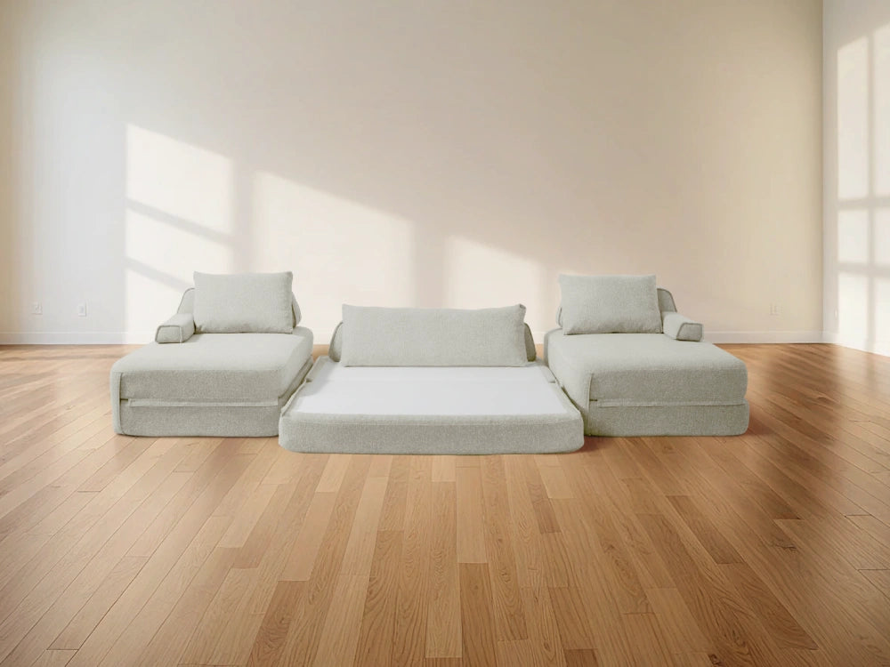 Cushie Modular Sofa Bed transforms from a stylish seat to a cozy bed in seconds—just flip and snooze. Unlike traditional sleeper sofas with noisy metal frames and complex pull-outs, Cushie keeps it simple and silent.