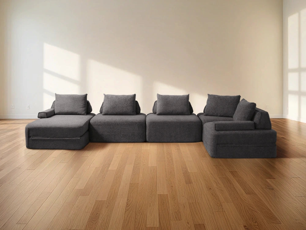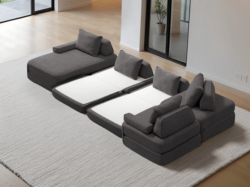 Cushie Modular Sofa Bed transforms from a stylish seat to a cozy bed in seconds—just flip and snooze. Unlike traditional sleeper sofas with noisy metal frames and complex pull-outs, Cushie keeps it simple and silent.