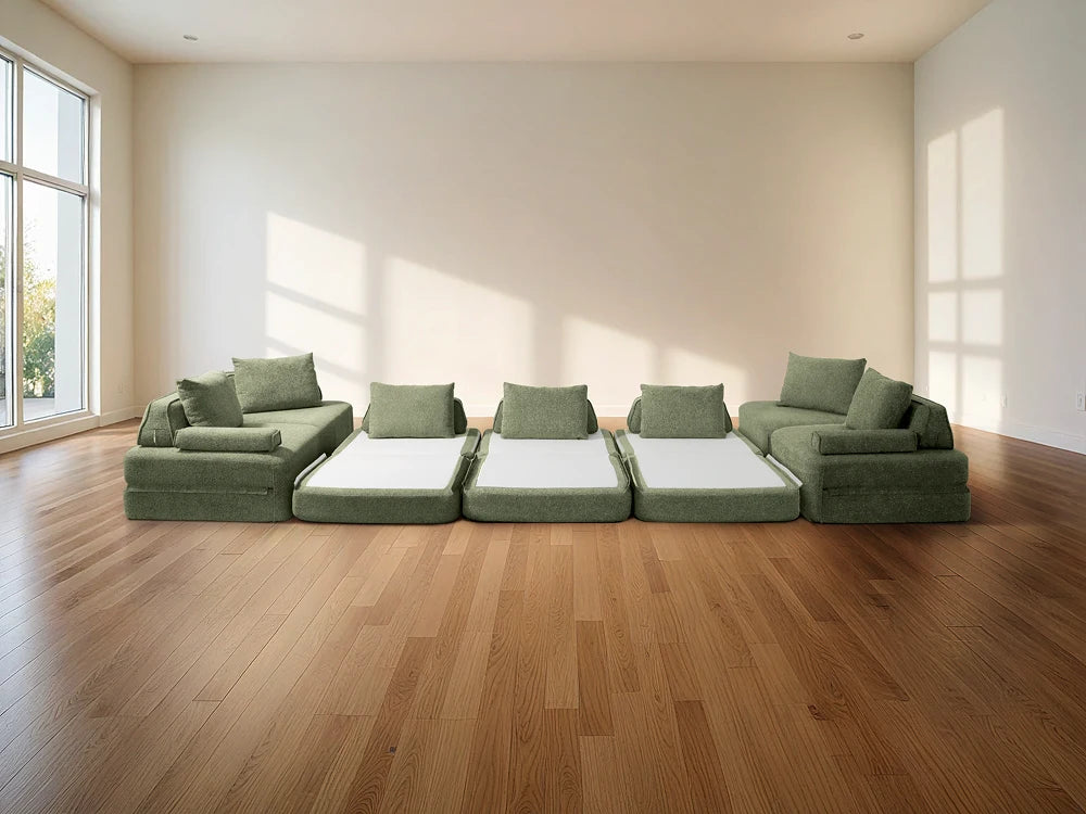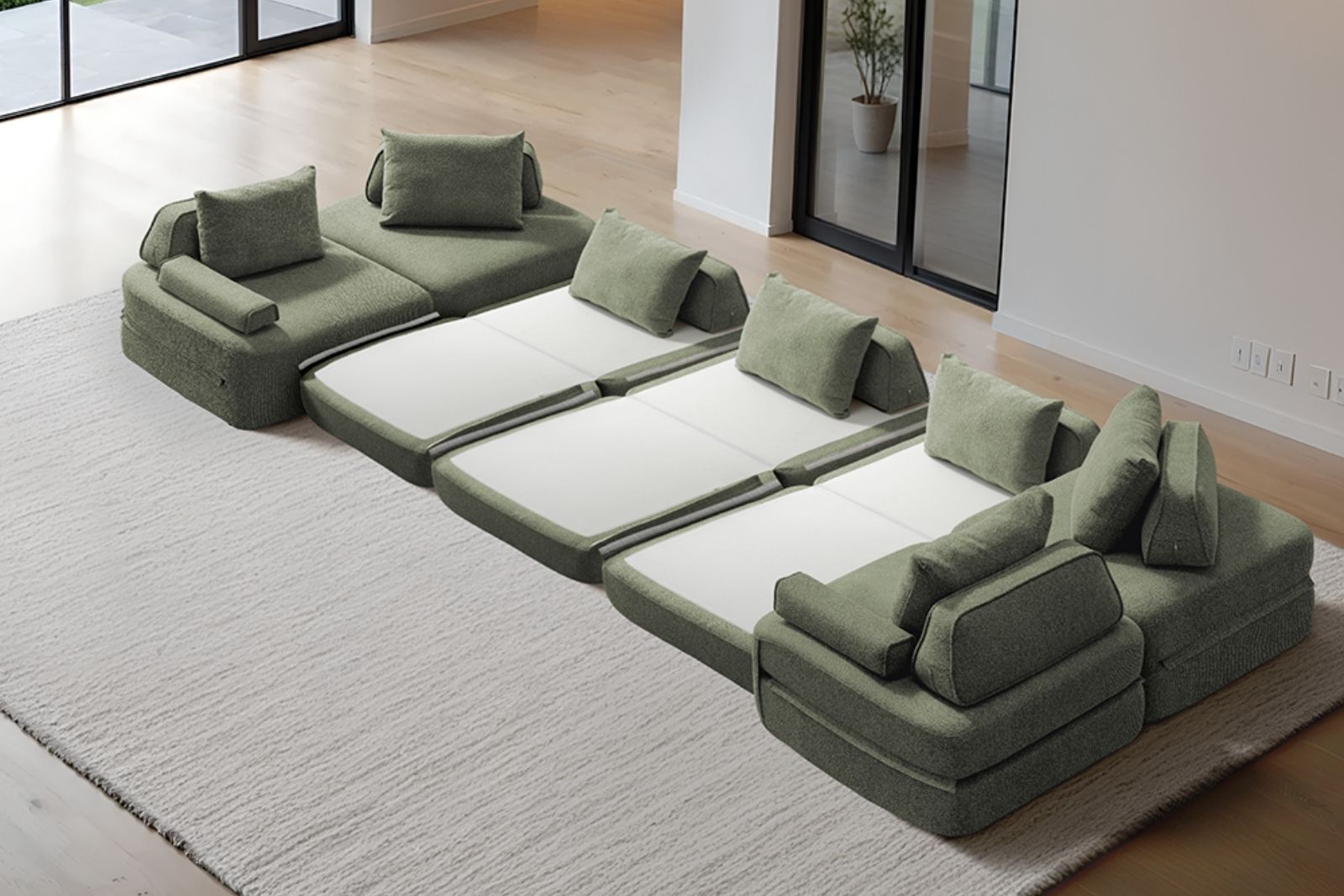 Cushie Modular Sofa Bed transforms from a stylish seat to a cozy bed in seconds—just flip and snooze. Unlike traditional sleeper sofas with noisy metal frames and complex pull-outs, Cushie keeps it simple and silent.