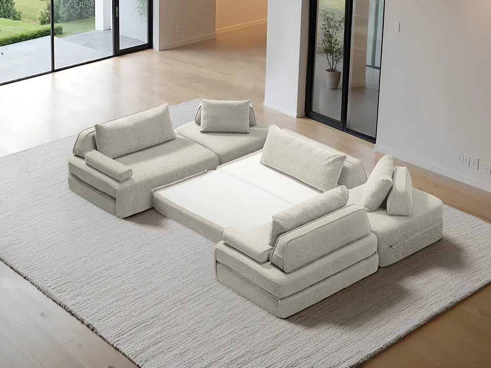 Cushie Modular Sofa Bed transforms from a stylish seat to a cozy bed in seconds—just flip and snooze. Unlike traditional sleeper sofas with noisy metal frames and complex pull-outs, Cushie keeps it simple and silent.