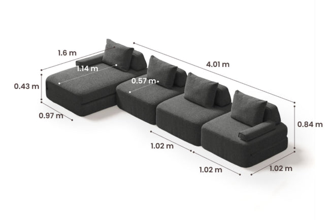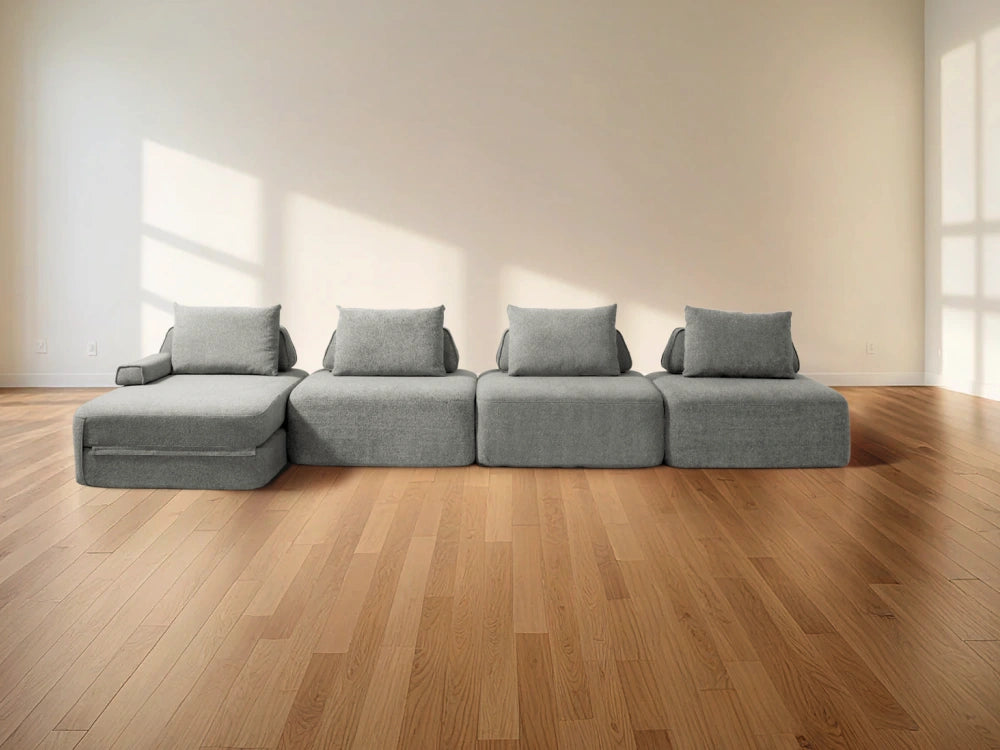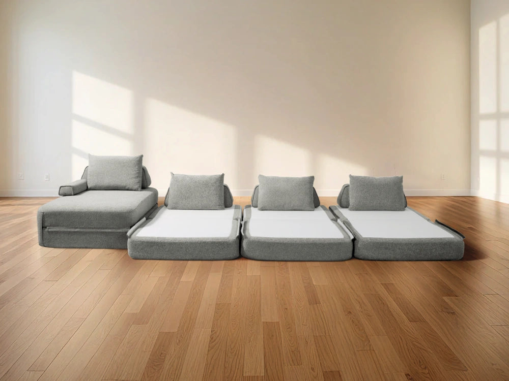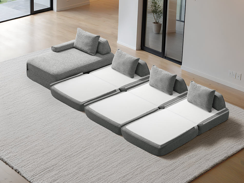 Cushie Modular Sofa Bed transforms from a stylish seat to a cozy bed in seconds—just flip and snooze. Unlike traditional sleeper sofas with noisy metal frames and complex pull-outs, Cushie keeps it simple and silent.