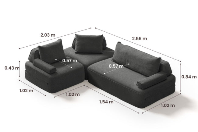 Cushie Modular Sofa Bed comes with removable & machine washable covers that zip off in seconds for a quick wash. When it is time for a new look, just swap the covers to refresh your space without replacing the whole sofa. Clean living and flexible style made effortless.