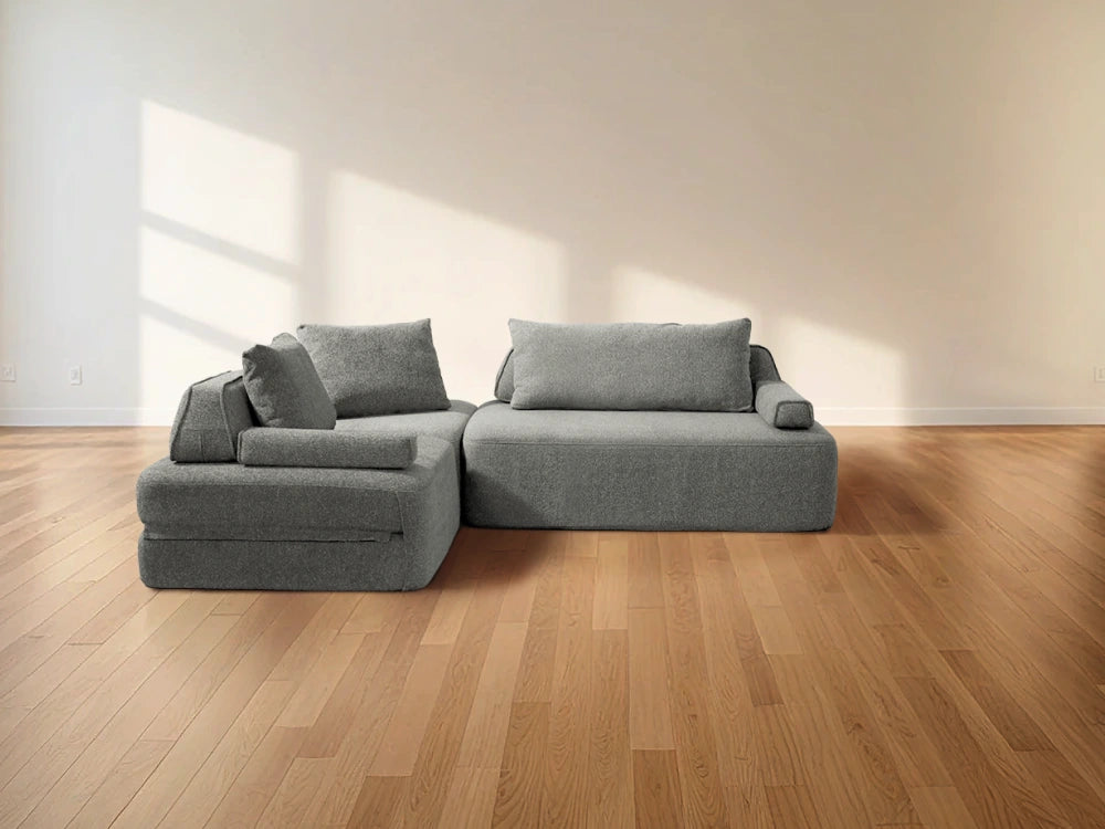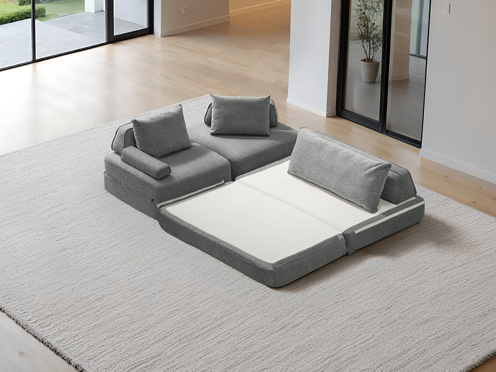 Cushie Modular Sofa Bed transforms from a stylish seat to a cozy bed in seconds—just flip and snooze. Unlike traditional sleeper sofas with noisy metal frames and complex pull-outs, Cushie keeps it simple and silent.