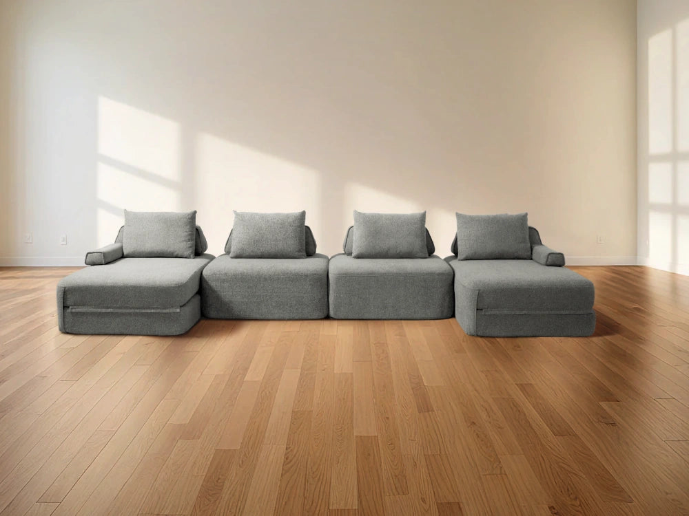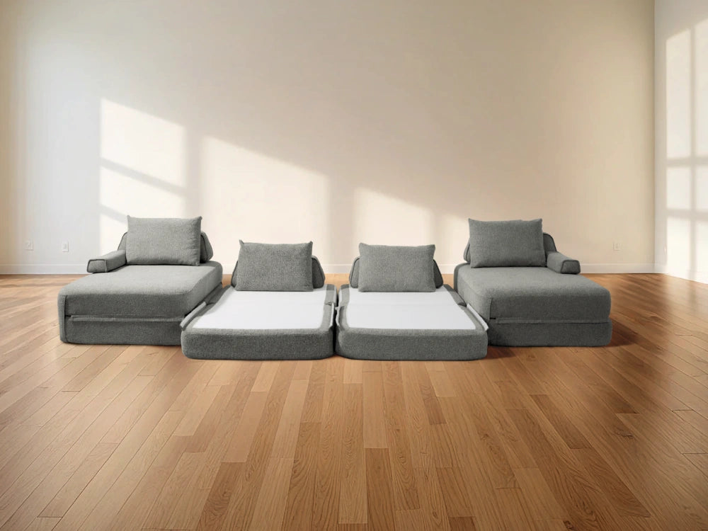 Cushie Modular Sofa Bed transforms from a stylish seat to a cozy bed in seconds—just flip and snooze. Unlike traditional sleeper sofas with noisy metal frames and complex pull-outs, Cushie keeps it simple and silent.