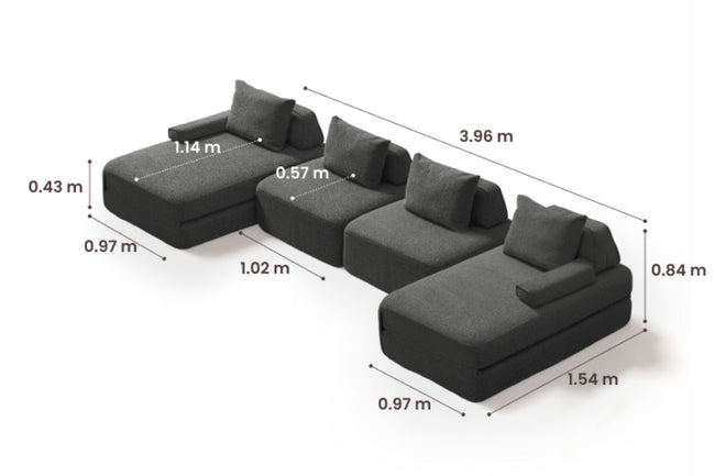 Seater: 4-Seater U-Shaped Double Chaise 3.96m