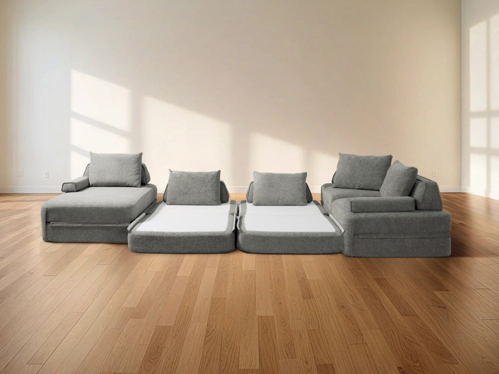 Cushie Modular Sofa Bed transforms from a stylish seat to a cozy bed in seconds—just flip and snooze. Unlike traditional sleeper sofas with noisy metal frames and complex pull-outs, Cushie keeps it simple and silent.