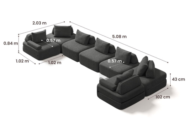 Seater: 7-Seater U-Shaped Chaise 5.08m