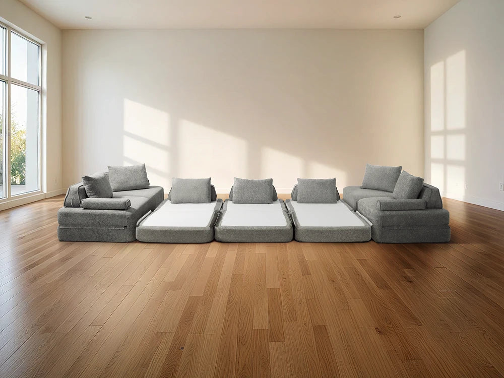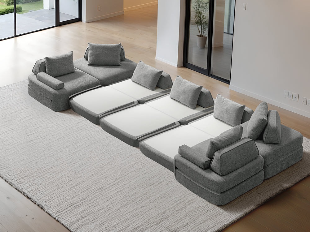 Cushie Modular Sofa Bed transforms from a stylish seat to a cozy bed in seconds—just flip and snooze. Unlike traditional sleeper sofas with noisy metal frames and complex pull-outs, Cushie keeps it simple and silent.
