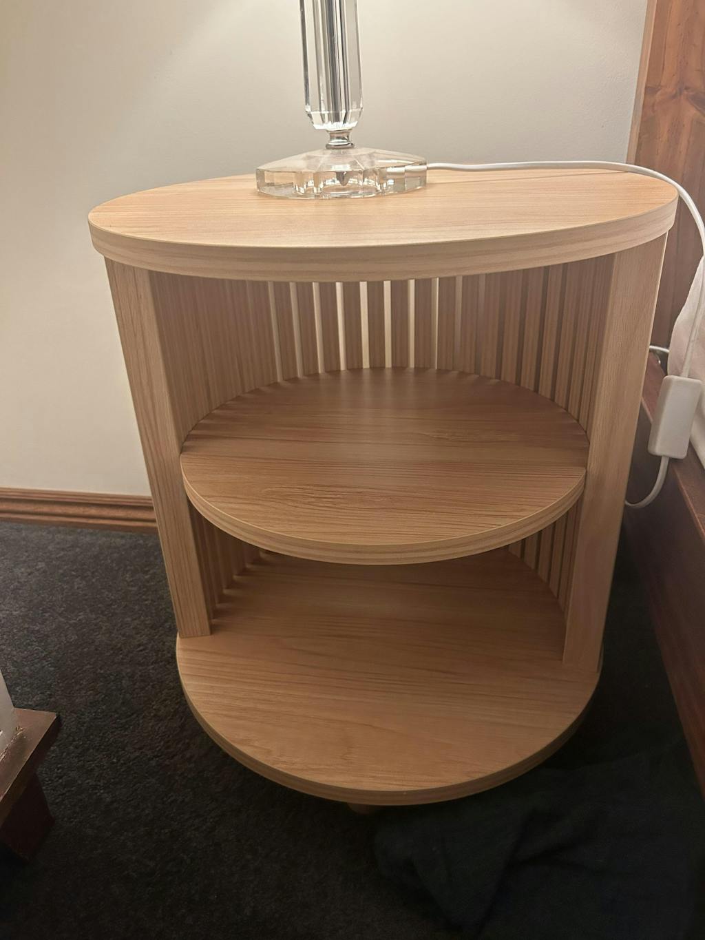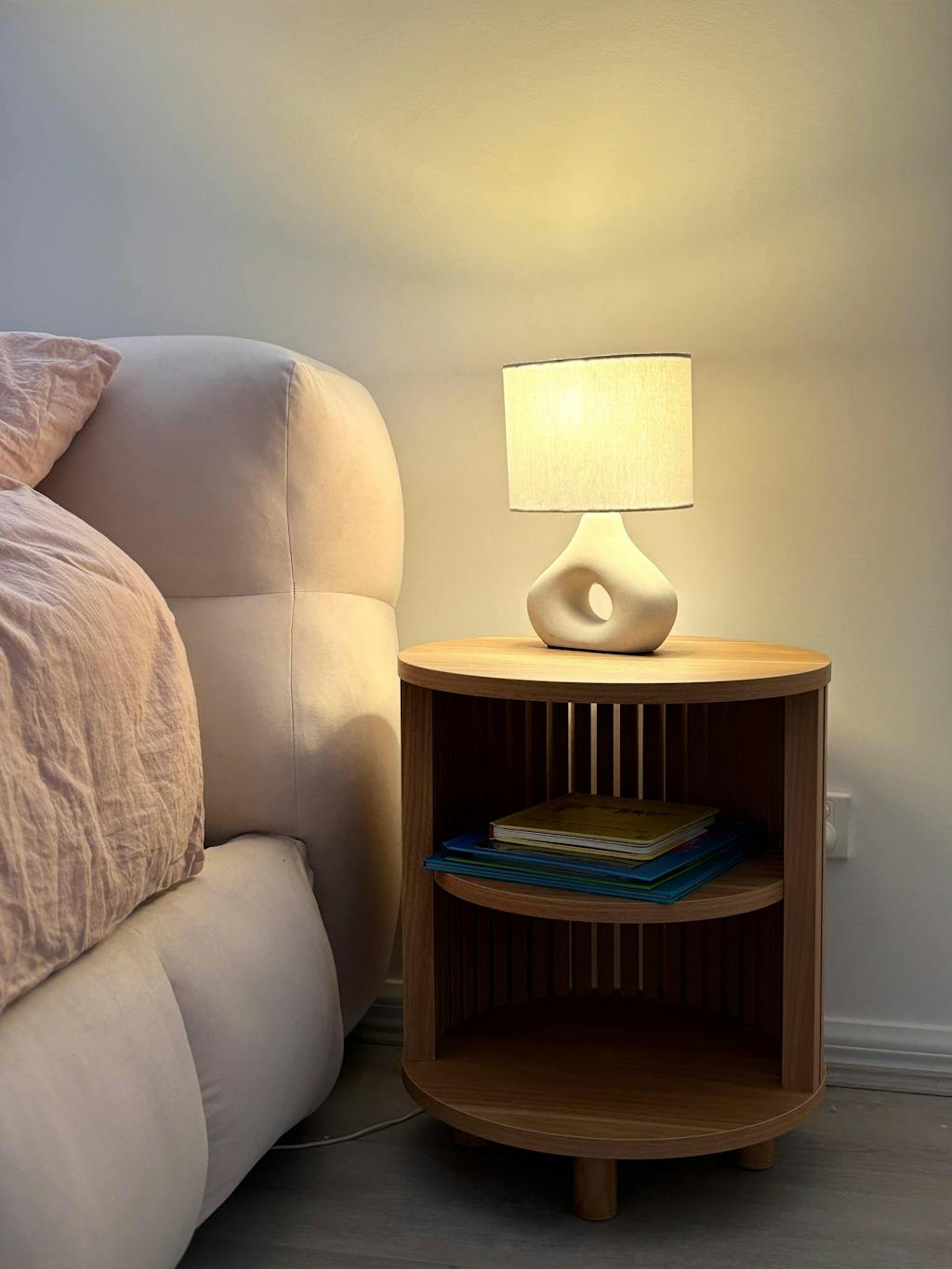 With its discreet slatted side panels and elegant round shape, the Harmony bedside table is proof that less is more when it comes to making an impact.