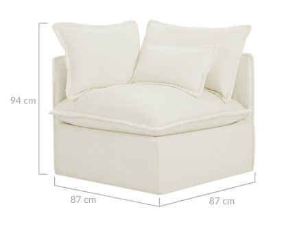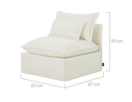 I originally got the 4 seater, I’ve since added two more seats and 2 ottomans. I have 2 toddlers and a dog (and a tradie) AND the white version and I am super impressed with the way it spot cleans. I’ve gotten pen, raspberry and chocolate off without having to wash it in the machine. The pillows get softer everytime we sit on it and it’s firm enough that it has decent support in the back. I hope they bring out more colours! Maybe boucle grey?? Or a chocolate! It has not disappointed me yet!