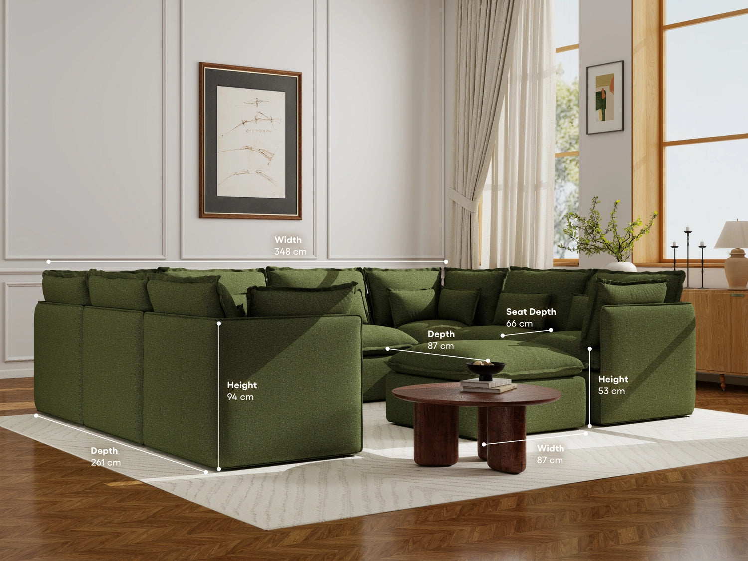 I originally got the 4 seater, I’ve since added two more seats and 2 ottomans. I have 2 toddlers and a dog (and a tradie) AND the white version and I am super impressed with the way it spot cleans. I’ve gotten pen, raspberry and chocolate off without having to wash it in the machine. The pillows get softer everytime we sit on it and it’s firm enough that it has decent support in the back. I hope they bring out more colours! Maybe boucle grey?? Or a chocolate! It has not disappointed me yet!