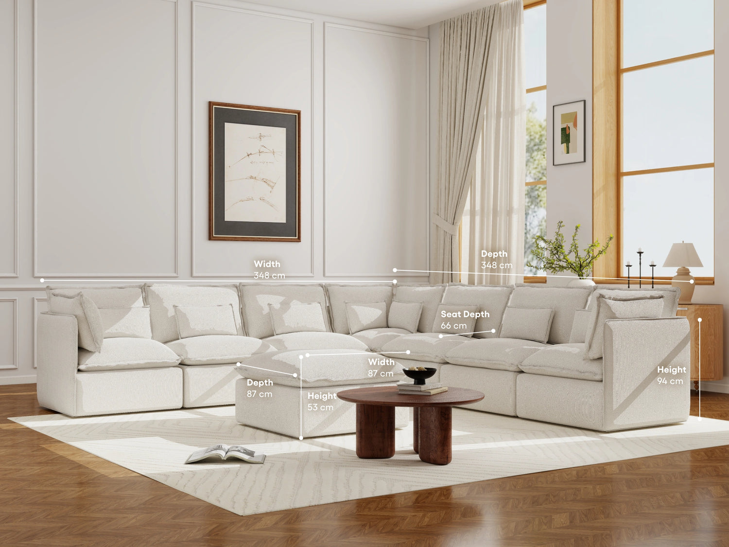 I originally got the 4 seater, I’ve since added two more seats and 2 ottomans. I have 2 toddlers and a dog (and a tradie) AND the white version and I am super impressed with the way it spot cleans. I’ve gotten pen, raspberry and chocolate off without having to wash it in the machine. The pillows get softer everytime we sit on it and it’s firm enough that it has decent support in the back. I hope they bring out more colours! Maybe boucle grey?? Or a chocolate! It has not disappointed me yet!
