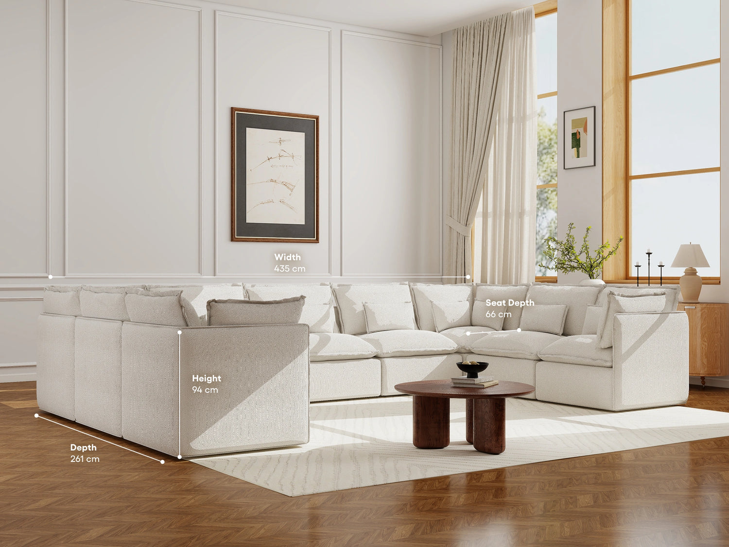 I originally got the 4 seater, I’ve since added two more seats and 2 ottomans. I have 2 toddlers and a dog (and a tradie) AND the white version and I am super impressed with the way it spot cleans. I’ve gotten pen, raspberry and chocolate off without having to wash it in the machine. The pillows get softer everytime we sit on it and it’s firm enough that it has decent support in the back. I hope they bring out more colours! Maybe boucle grey?? Or a chocolate! It has not disappointed me yet!