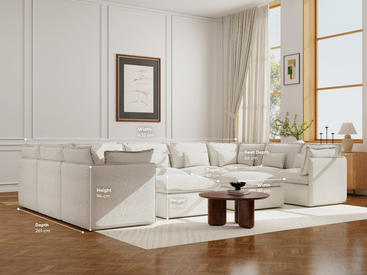 I originally got the 4 seater, I’ve since added two more seats and 2 ottomans. I have 2 toddlers and a dog (and a tradie) AND the white version and I am super impressed with the way it spot cleans. I’ve gotten pen, raspberry and chocolate off without having to wash it in the machine. The pillows get softer everytime we sit on it and it’s firm enough that it has decent support in the back. I hope they bring out more colours! Maybe boucle grey?? Or a chocolate! It has not disappointed me yet!