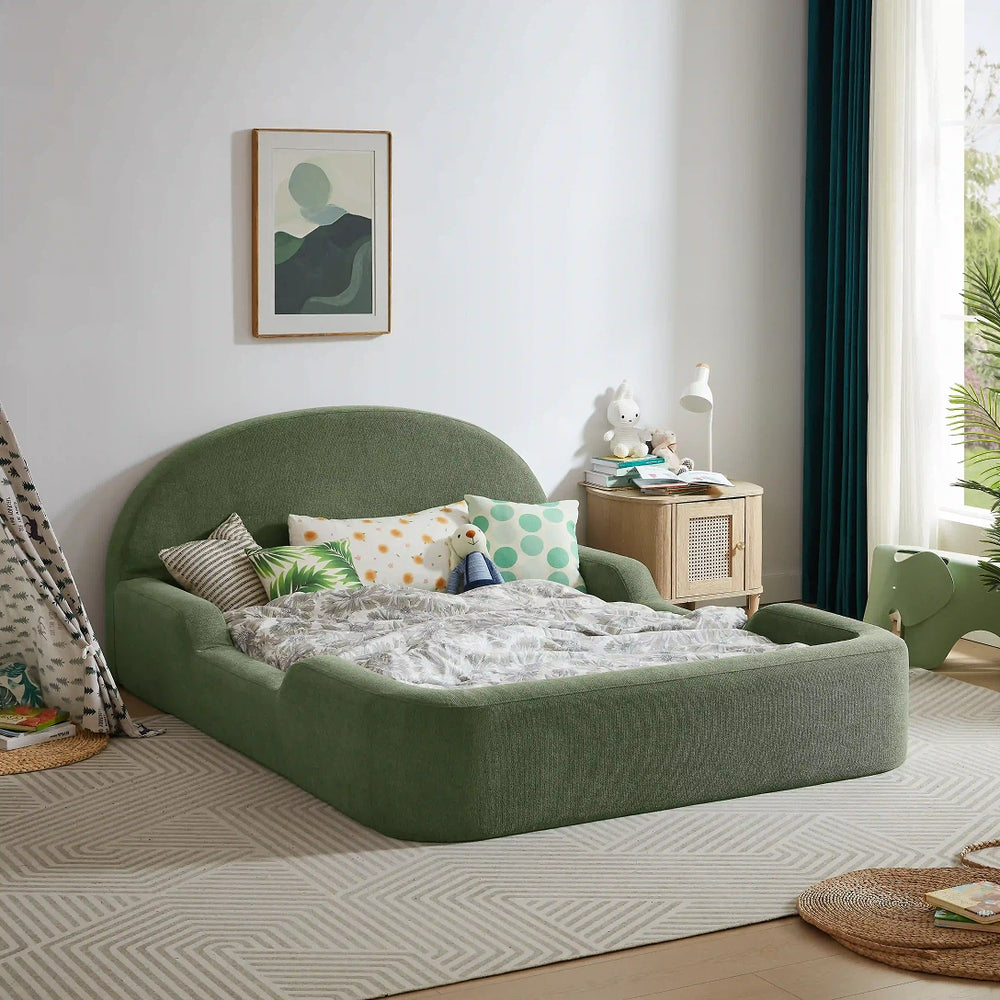 Built for Big Dreams & Little Accidents. Meet the bed that understands real life with real kids. Designed with soft, rounded edges and zero hard materials, the Little Lifely Double Bed (Pistachio) keeps bumps, bruises, and bedtime stress at bay. Its low-to-the-ground design makes it perfect for toddlers learning independence — without compromising on safety.